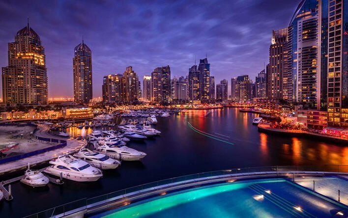 Dubai Marina: A vibrant waterfront district with towering skyscrapers, upscale restaurants, and a lively atmosphere.